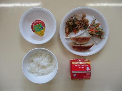 ・ごはん ・回鍋肉 ・春雨サラダ ・ミニトマト ・バナナ ・牛乳