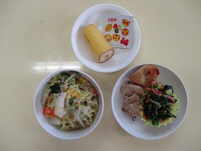・バターロール ・ミートグラタン ・もやしサラダ ・ナゲット ・ミニゼリー ・スープ