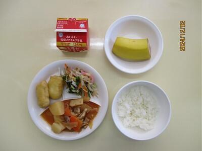 ・ごはん ・すき焼き風煮 ・春雨の酢の物 ・かぼちゃのいとこ煮 ・バナナ ・牛乳