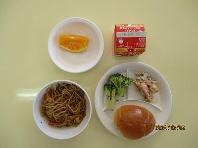 ・バターロール ・焼きそば ・ごぼうサラダ ・ブロッコリー ・オレンジ ・牛乳