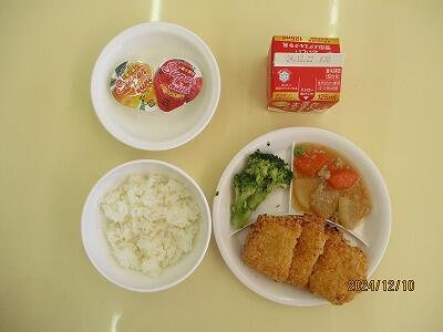 ・ごはん ・はんぺんチーズフライ ・大根のそぼろ煮 ・ブロッコリー ・ミニゼリー ・牛乳