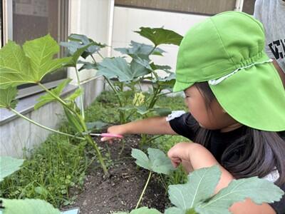 「こんなところにもあった~」とオクラ探しを楽しんだり、