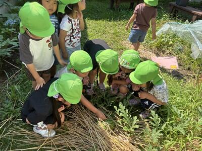 うさぎ組では中庭の野菜収穫やプール活動・カブトムシのお世話など