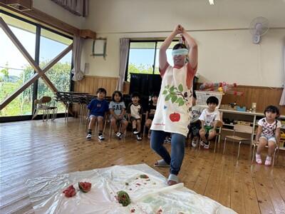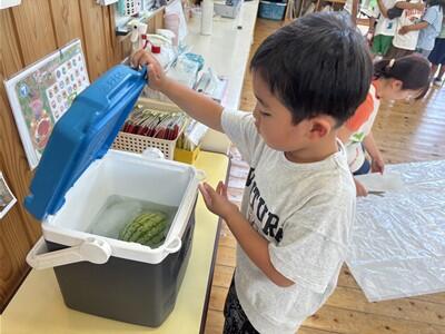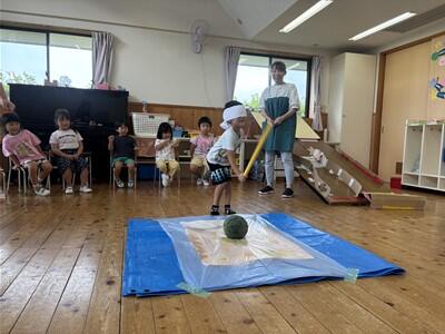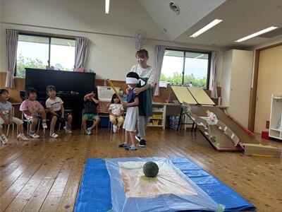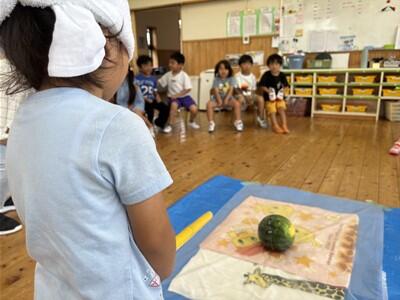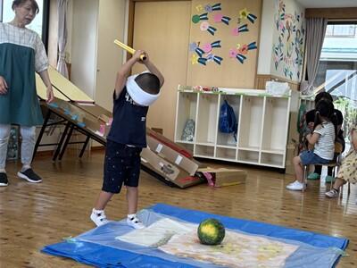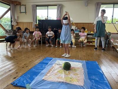 (子ども達にスイカをどうやって食べたいか聞いたら、満場一致でスイカ割りをしたい!!と。食べるだけでなく、いろいろな楽しみ方を知っているうさぎ組の子ども達です)