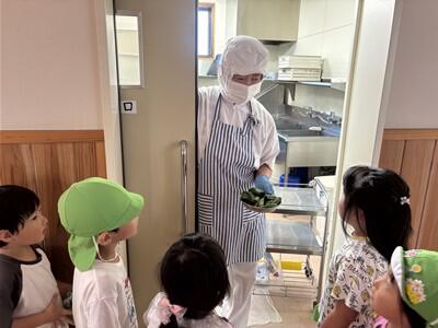 収穫したお野菜は、給食室の先生が「どうやって食べる??」と子ども達のリクエストを聞いて調理してくれています(^^)