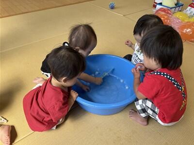 お盆期間中お休みしていた子達も登園し、久しぶりに元気な声でいっぱいのうさぎ組です。