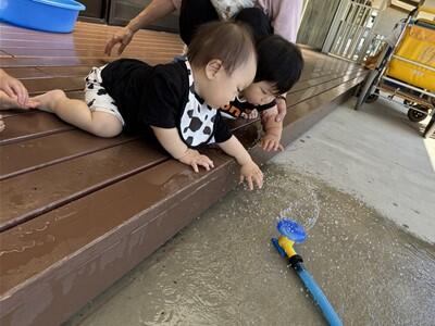 慣れてくると水の流れる様子を見たり、手で触れようとしていました