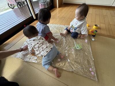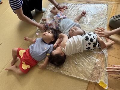 マットの不思議な感触やひんやり感を味わっていた子どもたち