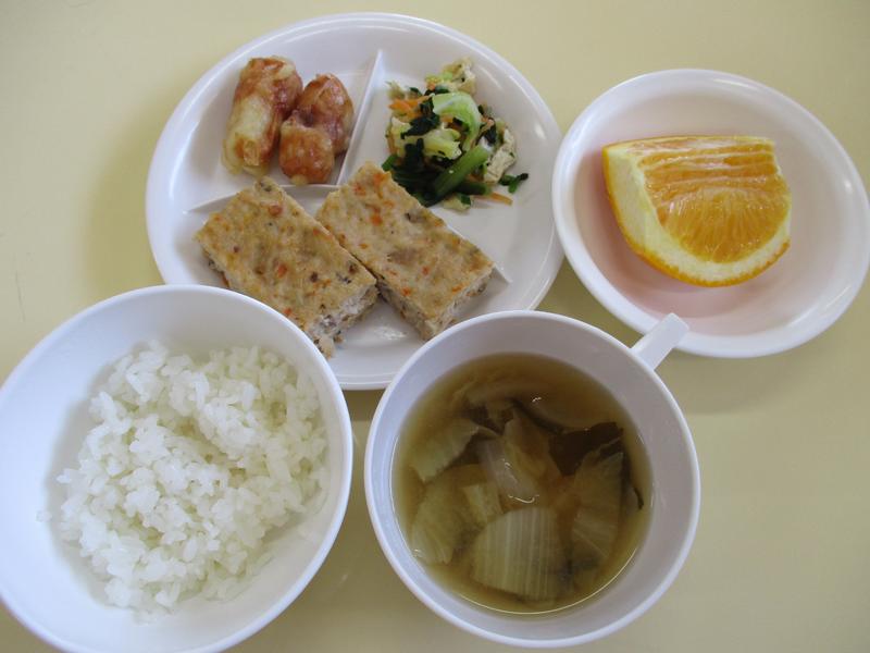 ・ごはん ・千種焼 ・信田和え ・チーズちくわ天 ・はっさく ・味噌汁