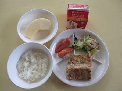 ・ごはん ・千種焼 ・ウインナー ・なめ茸和え ・りんご ・牛乳