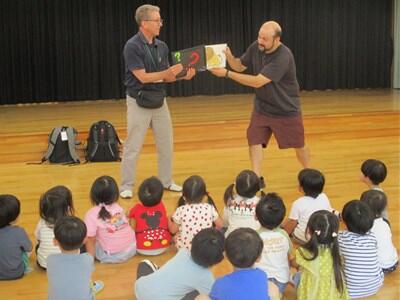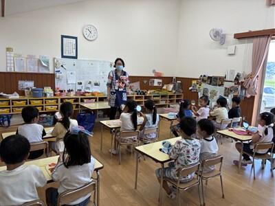 クイズやリズムに合わせて楽しく英語にふれている様子が分かりますね