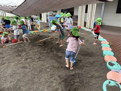 PS:きのう、砂場について、ひとり言をお話しましたが、今日はどのクラスが来てどんな遊び方するのかな~って見ていたんです。