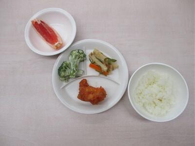 ・ごはん ・鶏肉の甘辛揚げ ・ちくわのきんぴら ・ブロッコリー ・グレープフルーツ ・牛乳
