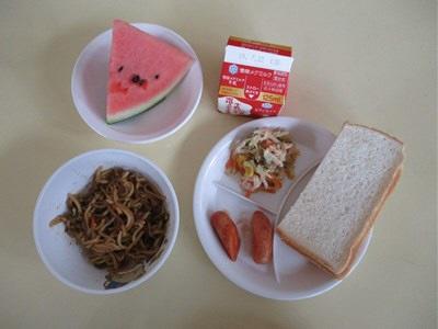 ・食パン ・焼きそば ・ウインナー ・棒々鶏サラダ ・すいか ・牛乳