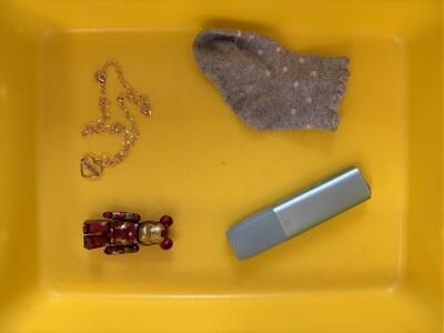 ・ハートのネックレス ・くつした(片方) ・アイコス ・クマアイアンマンのキーホルダー?