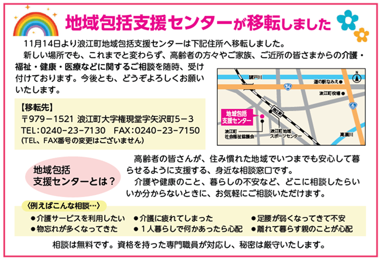 浪江町地域包括支援センター移転のお知らせ