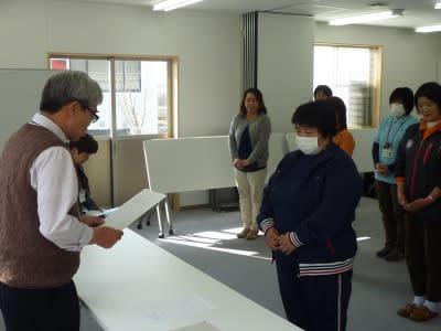 震災前から今日まで介護事業所を支えてきたヘルパーさんお二人に辞令交付。