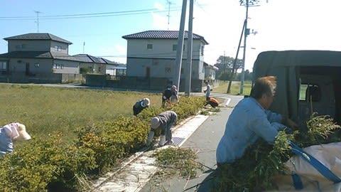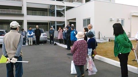 災害公営に転居(帰還)されてから初めての開催です。想定よりも多くの人達が集まり、住んでいる皆さんで環境整備です。