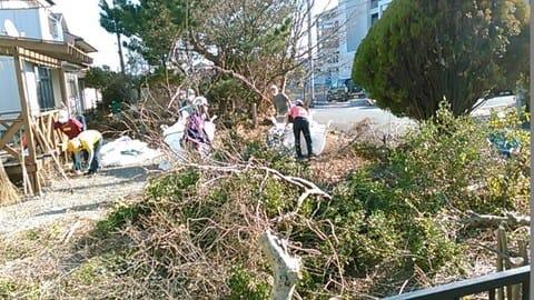 4件目は、個人ボランティアさん7名チームによる垣根の伐採です。個人ボラさんも、様々な活動現場で顔見知りとなり、「元気だった?」などの会話が弾み、リーダーもすぐに決まって、依頼主さんからの要望をあっという間に終了!!