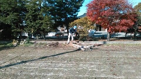 今日は、前回活動をして終わらなかった裏庭の伐採作業です♪