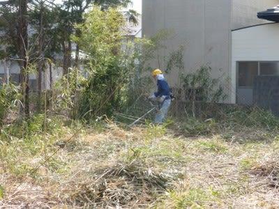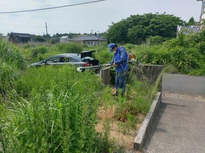 1件目は敷地が広大なうえ伸びきった雑草により車両の進入しづらい現場での作業です。