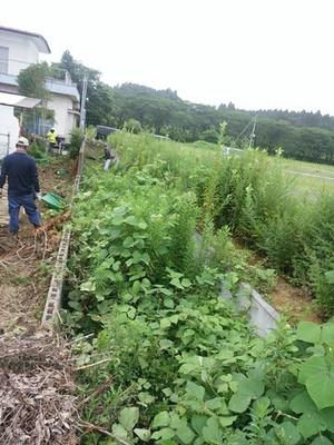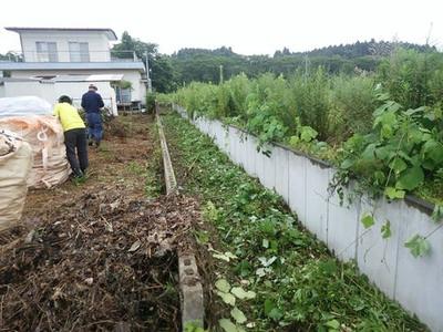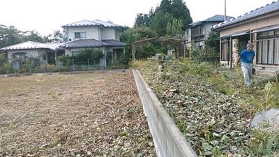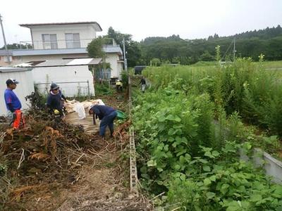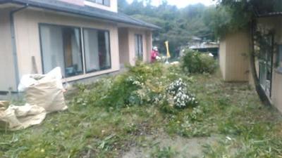 との相談により、浪江町内で住んでいる人が困っているなら、と、ボランティアさんのお力をお借りしての「庭の草刈作業」です!!