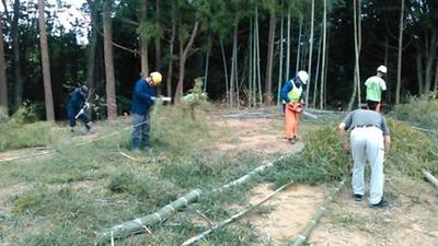 竹を切り倒す人、枝払いをする人、袋に詰める人それぞれ役割を分担して作業を行いました。