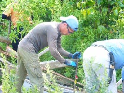 そして、10人のグループは、前回からの引き続き、裏庭の竹の伐採、裁断です。