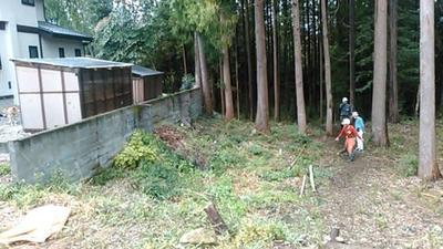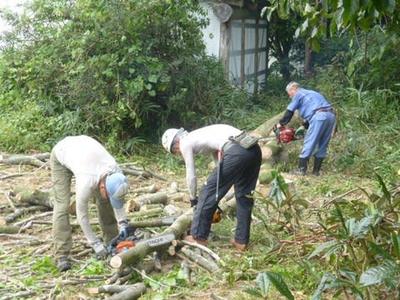 こちらの現場は、昨日別のボランティアさんに草刈りをしてもらった現場の庭木伐採です。