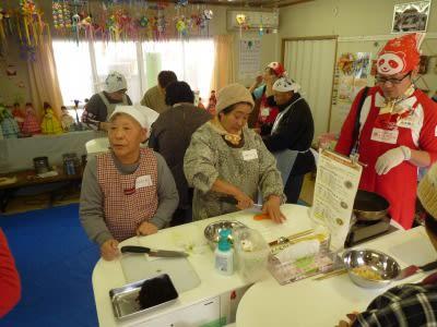 違う仮設住宅に住んでいる住民さんが、同じ町民の避難者のために、こうして楽しませに来てくれる!