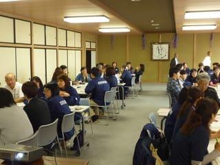 介護保険、地域包括支援センターについての研修があり、介護保険のサービスを受けるための申請方法などを講義いただきました。