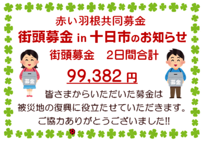 今日は先日浪江町にて行われた十日市で街頭募金させていただいた際の結果をご報告させていただきます。