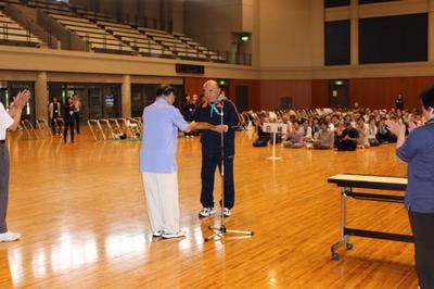 二本松市城山総合体育館にて高齢者スポーツ大会が開催され、県内から200名参加し、クロリティやスカットボールなどおなじみの競技を楽しんだり、今回初となる仮装大賞では様々なキャラクターに扮した参加者の姿に歓声や笑い声が巻き起こり、梅雨の天候を吹き飛ばすかのように大いに盛り上がりました。