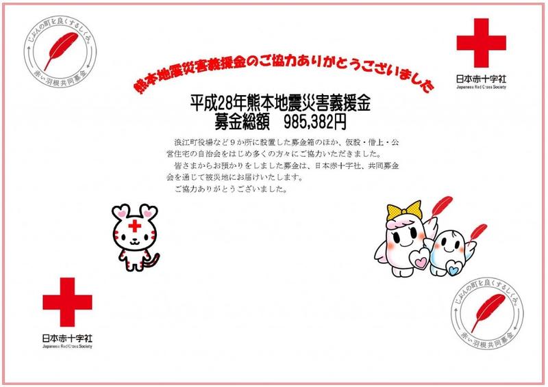 日本赤十字社浪江町分区、浪江町共同募金委員会を通じてご案内をしました「平成28年熊本地震災害義援金」に