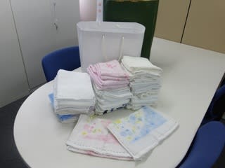 お掃除など何かと雑巾は重宝するものであり、いただいた雑巾は、紙袋にいっぱい。