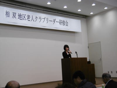 午前の部では福島県老人クラブ連合会の齋藤事務局長の講義があり、介護予防には老人クラブの活動が有効であること、
