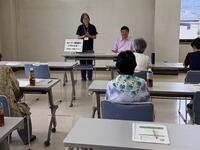 冒頭、健康保険課主催・薬剤師による「おくすり講話」があり、くすりの飲み方や使用期限についてなどの質問が積極的に質問ありました。お話しを聞いて薬に対する意識が高まったようでした。