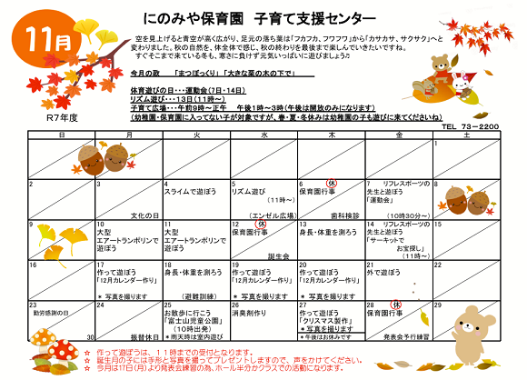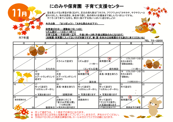 令和7年11月予定表(子育て支援センター)
