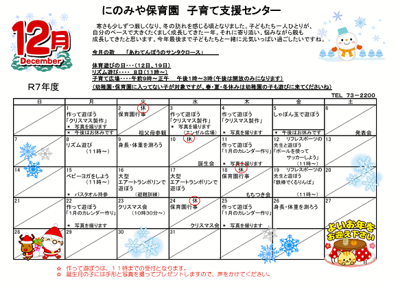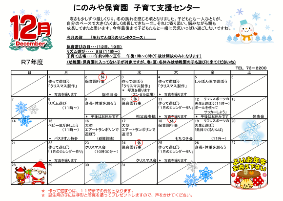 令和7年12月予定表(子育て支援センター)