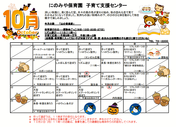 令和5年10月予定表(子育て支援センター)