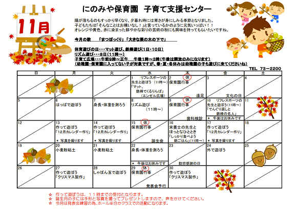 令和5年11月予定表(子育て支援センター)