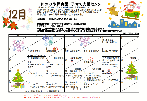令和5年12月予定表(子育て支援センター)
