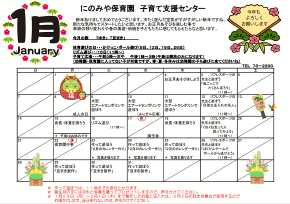 令和6年1月予定表(子育て支援センター)