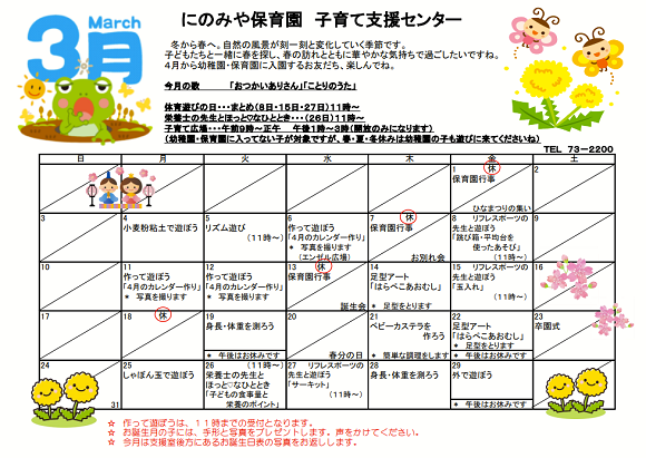 令和6年3月予定表(子育て支援センター)