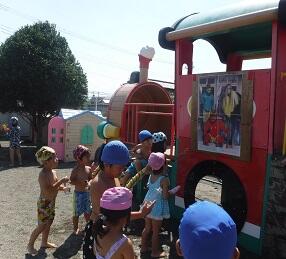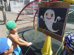 最後の水遊びは水鉄砲を使って、おばけ退治をしました。