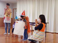 皆がおまちかねの先生の出し物は2択クイズです!食べ物や乗り物、動物などいろんな2択クイズが出題され、先生のお話をよく聞いてどっちにいこうかな?と考えています(^^♪