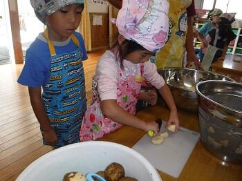 畑で作ったジャガイモでカレー作りをしました。