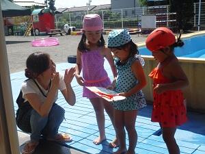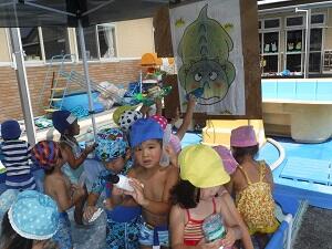 プールの神様にお礼をして、園長先生からがんばり賞の賞状をいただきました。
