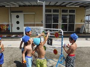 最後の水遊びは水鉄砲を使って、おばけ退治をしました。