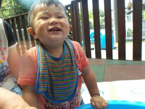 ひよこ組さんの子ども達も、水遊びしたり沐浴したりしながら